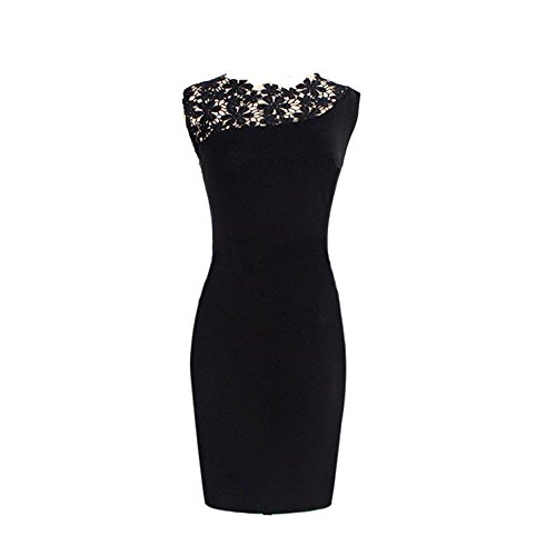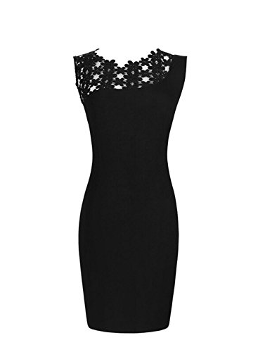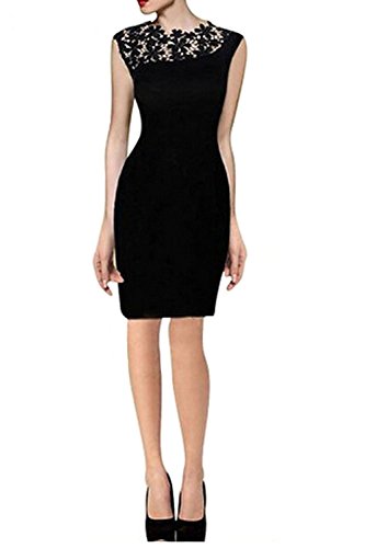 Viwenni Damen Vorne Ohne arm Bodycon Spitzen Pencil Kleid Schwarz EU Gr.S-XXL